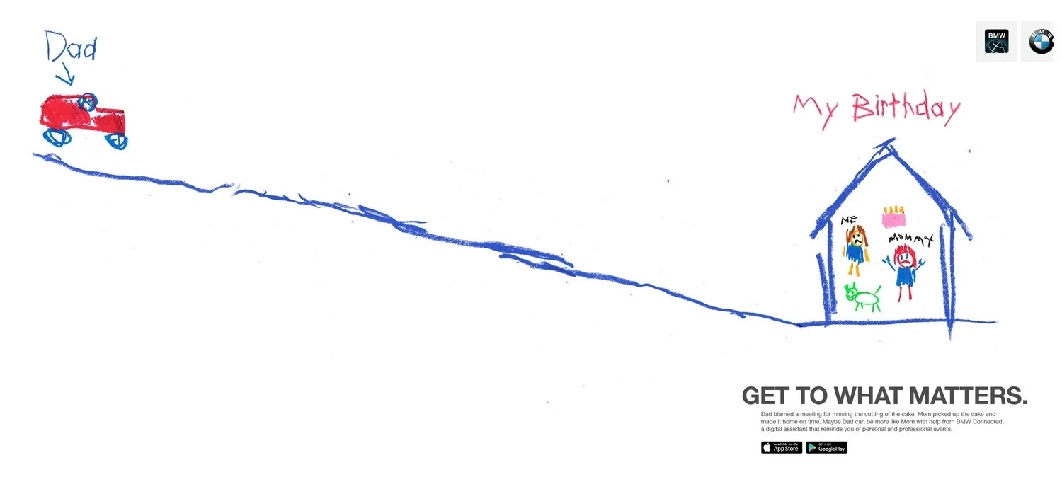 Working professionals have a hard time balancing work and personal life, this often results in missing life's important moments. BMW Connected app is a digital assistant that helps drivers never miss a beat and Get To What Matters.